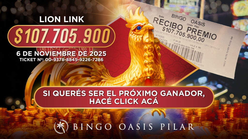 Noviembre trajo la fortuna a gran escala en el Bingo Oasis Pilar, confirmando su reputación como la sala de juego con los pozos más grandes de Argentina y, por consecuencia, los mejores premios. Asi fue cómo la famosa máquina Lion Link entregó un monumental premio de $107.705.900 durante la tarde del jueves 6 de noviembre.