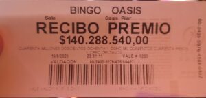 Premios millonarios del 19 al 25 de Agosto en Bingo Oasis Pilar